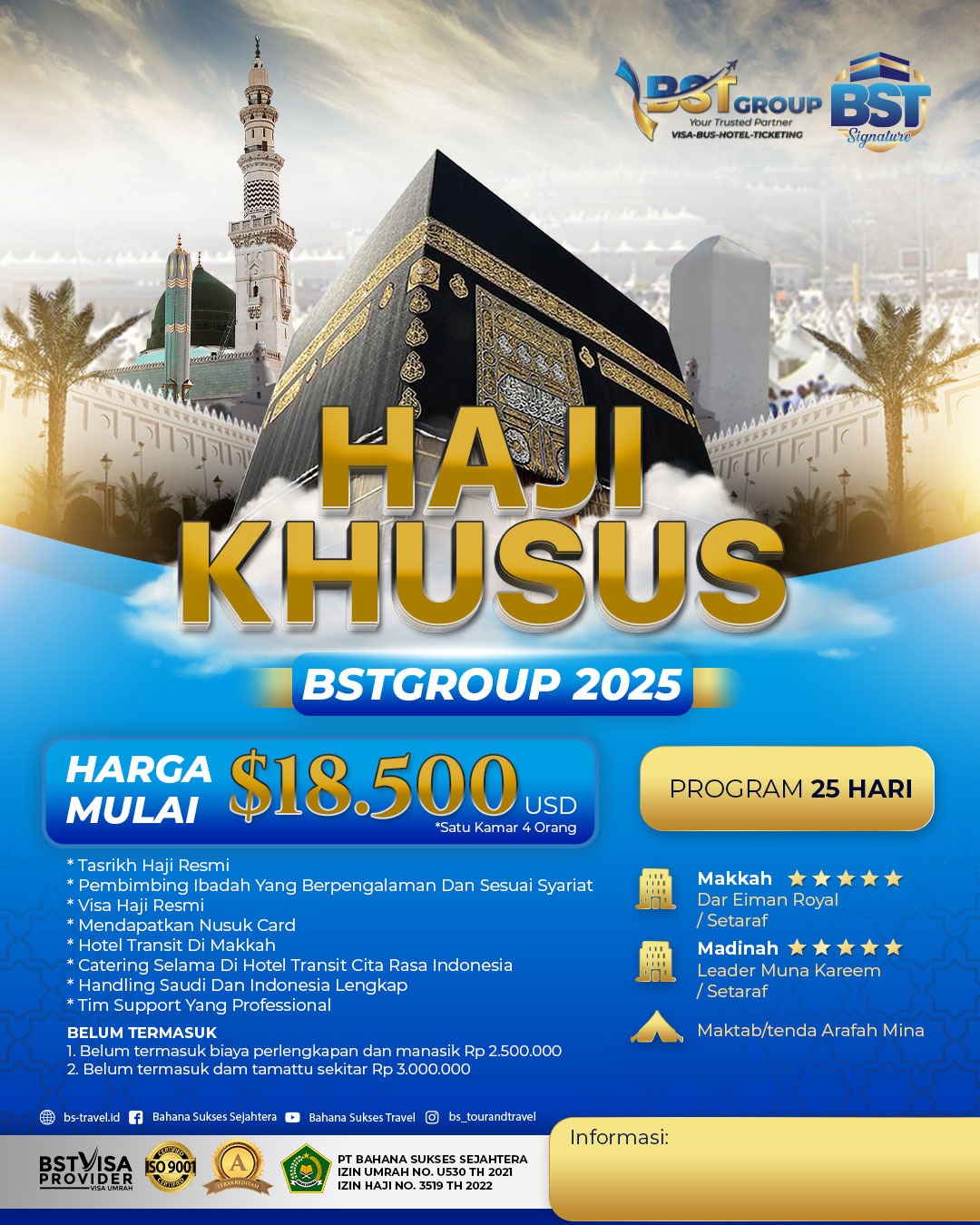 Pendaftaran Haji & umrah Indonesia hadir sebagai solusi aman, terpercaya, dan profesional dalam membantu umat Islam mewujudkan impian menunaikan rukun Islam kelima. Dengan pengalaman dan dedikasi tinggi, kami berkomitmen memberikan layanan terbaik mulai dari proses pendaftaran, edukasi manasik, hingga pendampingan selama perjalanan ibadah di Tanah Suci.